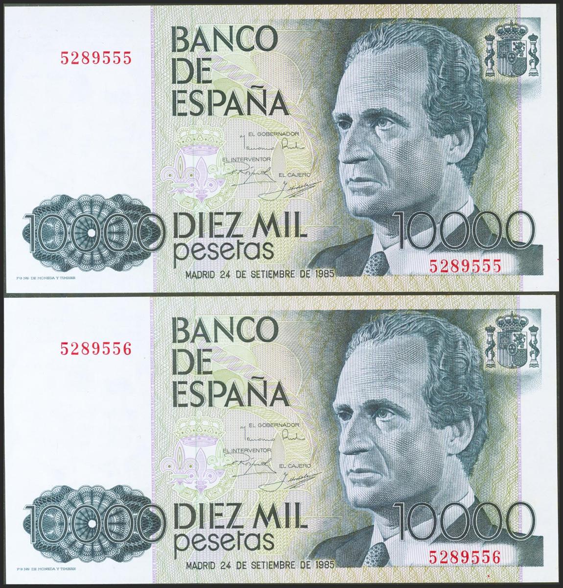 10000 Pesetas. September 24, 1985. Correlative pair. No serie. (Edifil 2021: 481). Uncirculated.
