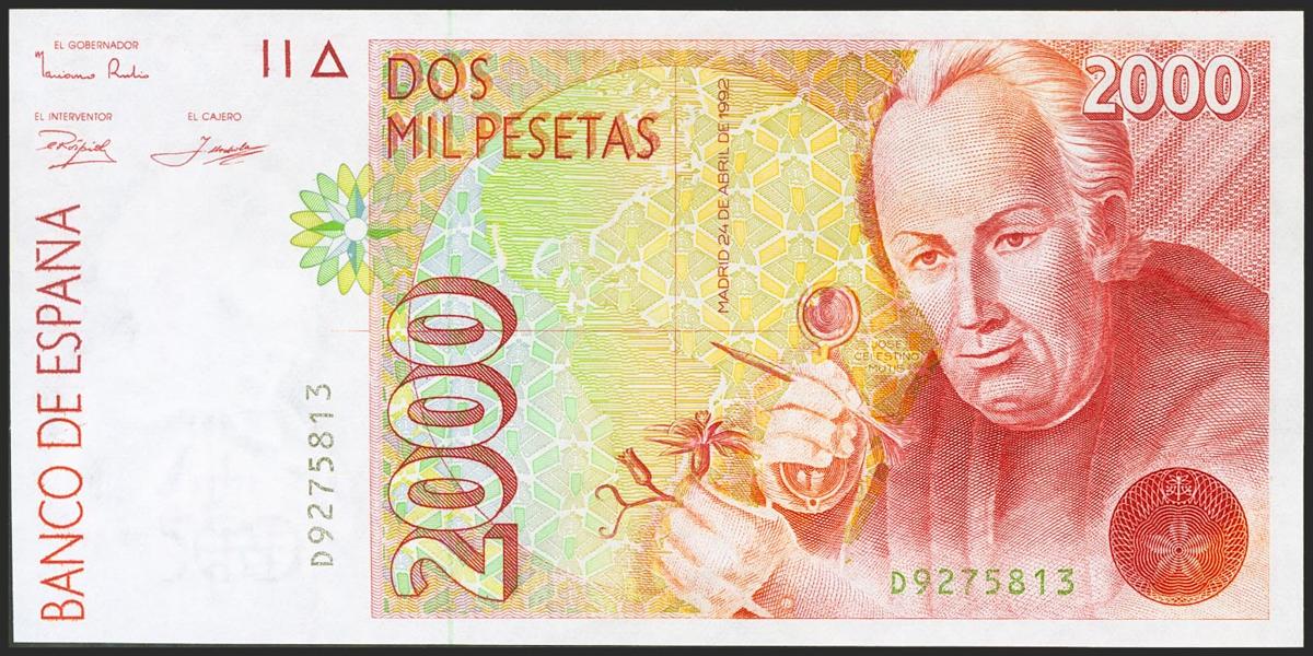 2000 pesetas. April 24, 1992. Series 1D. (Edifil 2021: 482a). Almost Uncirculated.