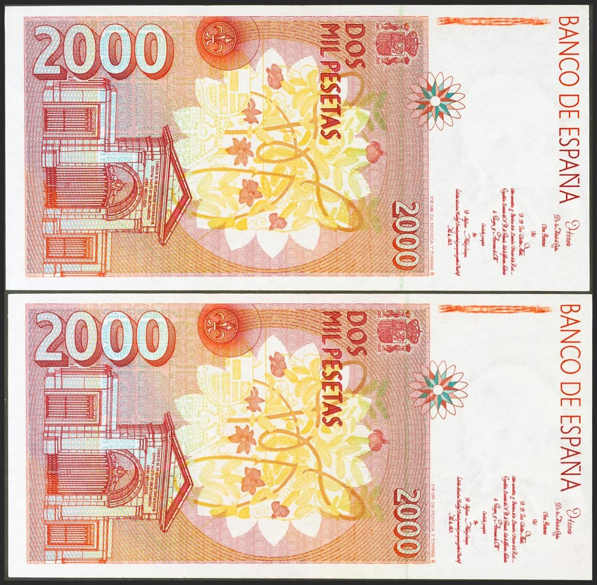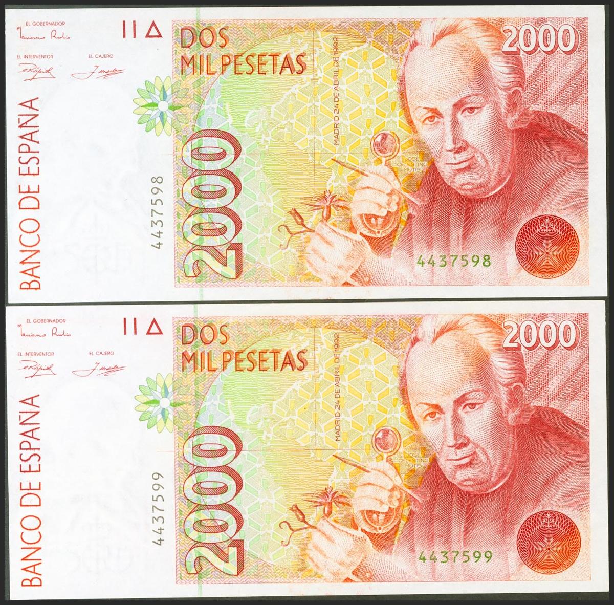 English 2000 pesetas. April 24, 1992. Correlative couple. No serie. (Edifil 2021: 482). Uncirculated.