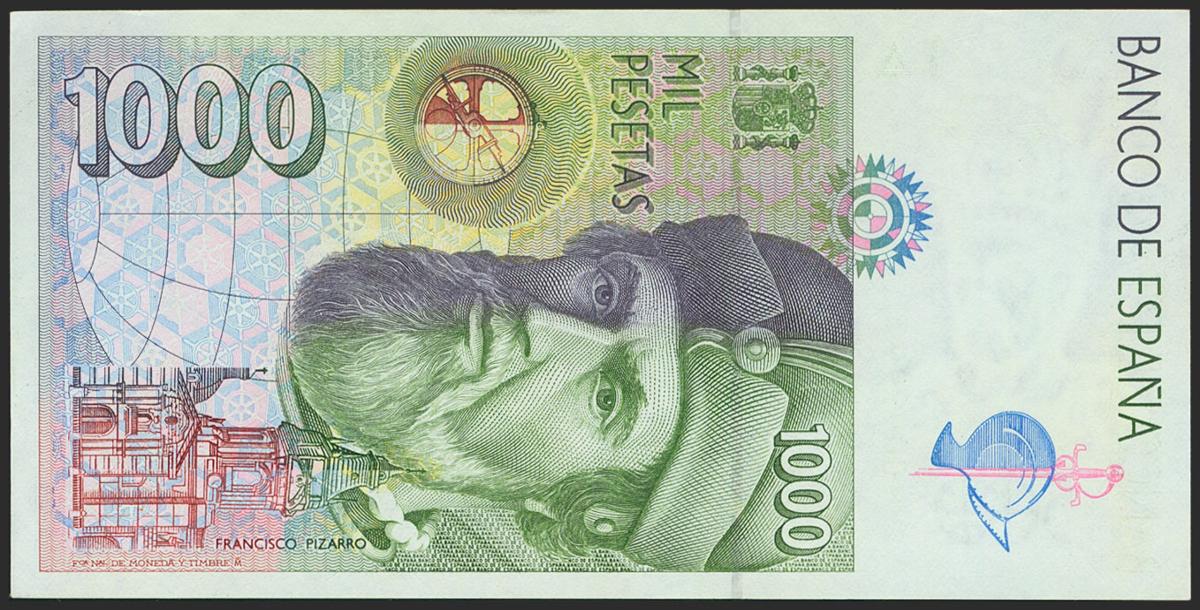 1000 Pesetas. October 12, 1992. No series and very low numbering and imperfect capicúa. (Edifil 2021: 483). Uncirculated.
