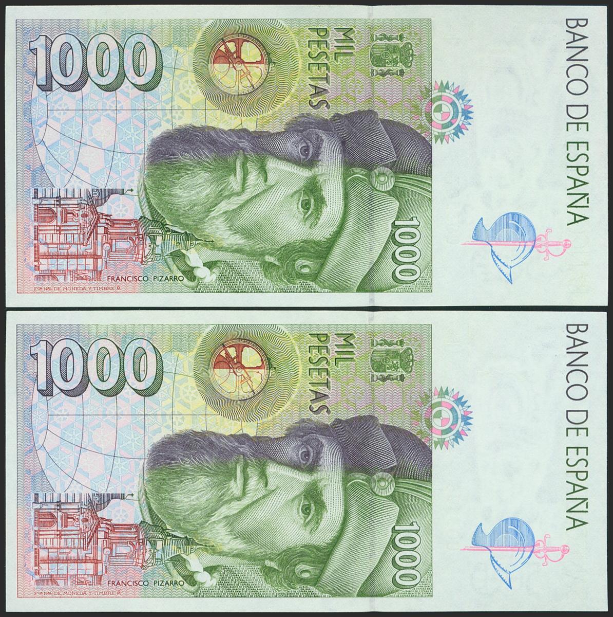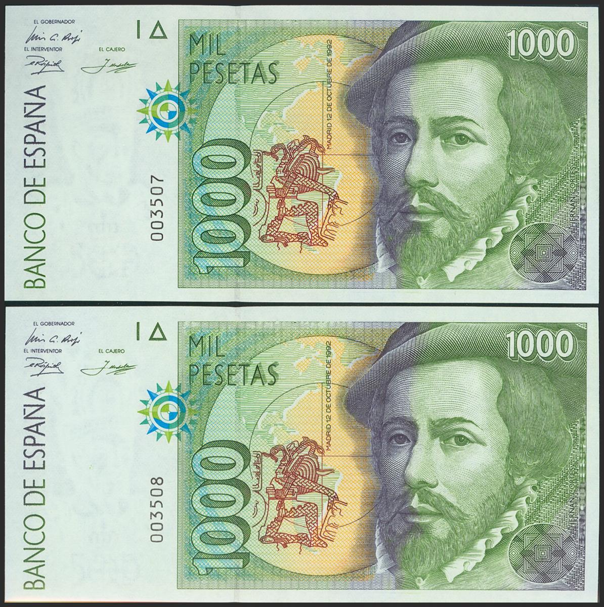 1000 Pesetas. October 12, 1992. Correlative couple. No serie. (Edifil 2021: 483). Uncirculated.