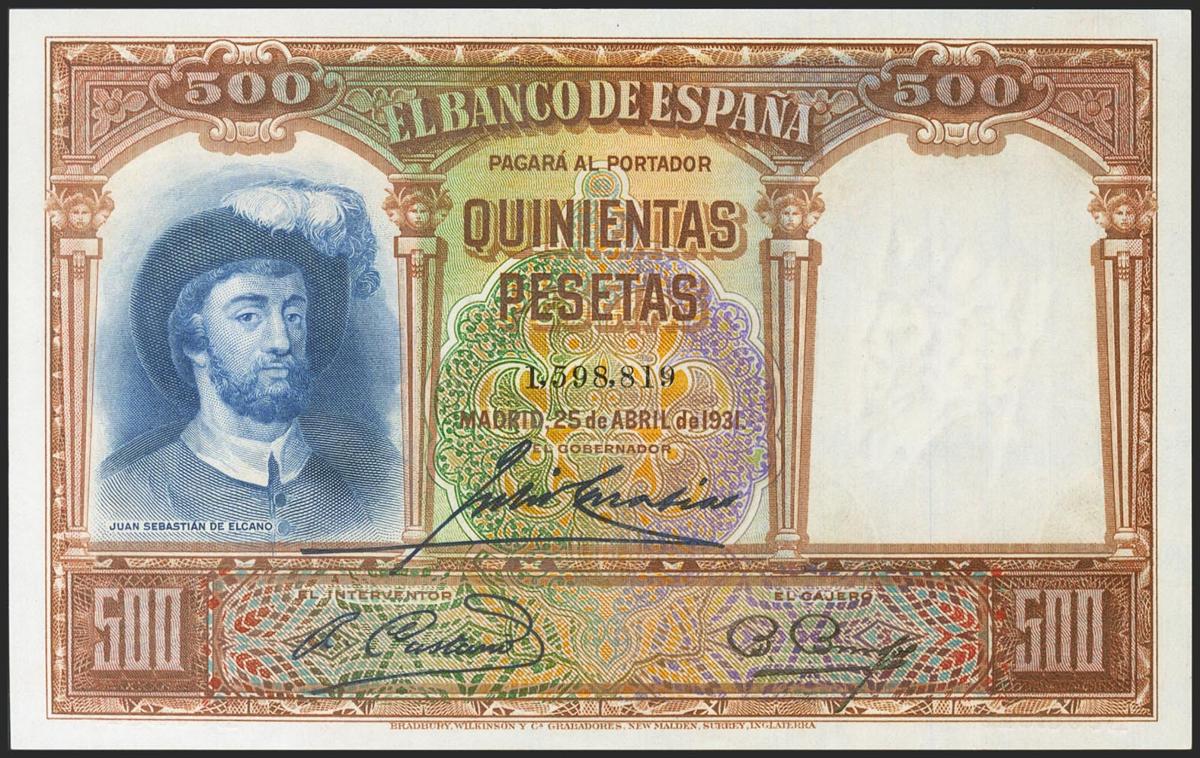 English 500 pesetas. April 25, 1931. Without series. (Edifil 2021: 361). It keeps all the original sizing. EBC ++.