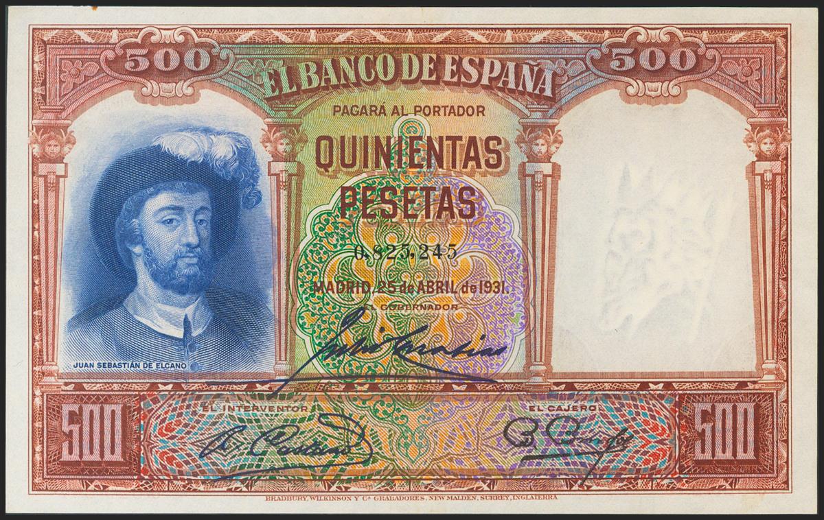 500 pesetas. April 25, 1931. Without series. (Edifil 2021: 361). Original sizing. Good Extremely Fine.