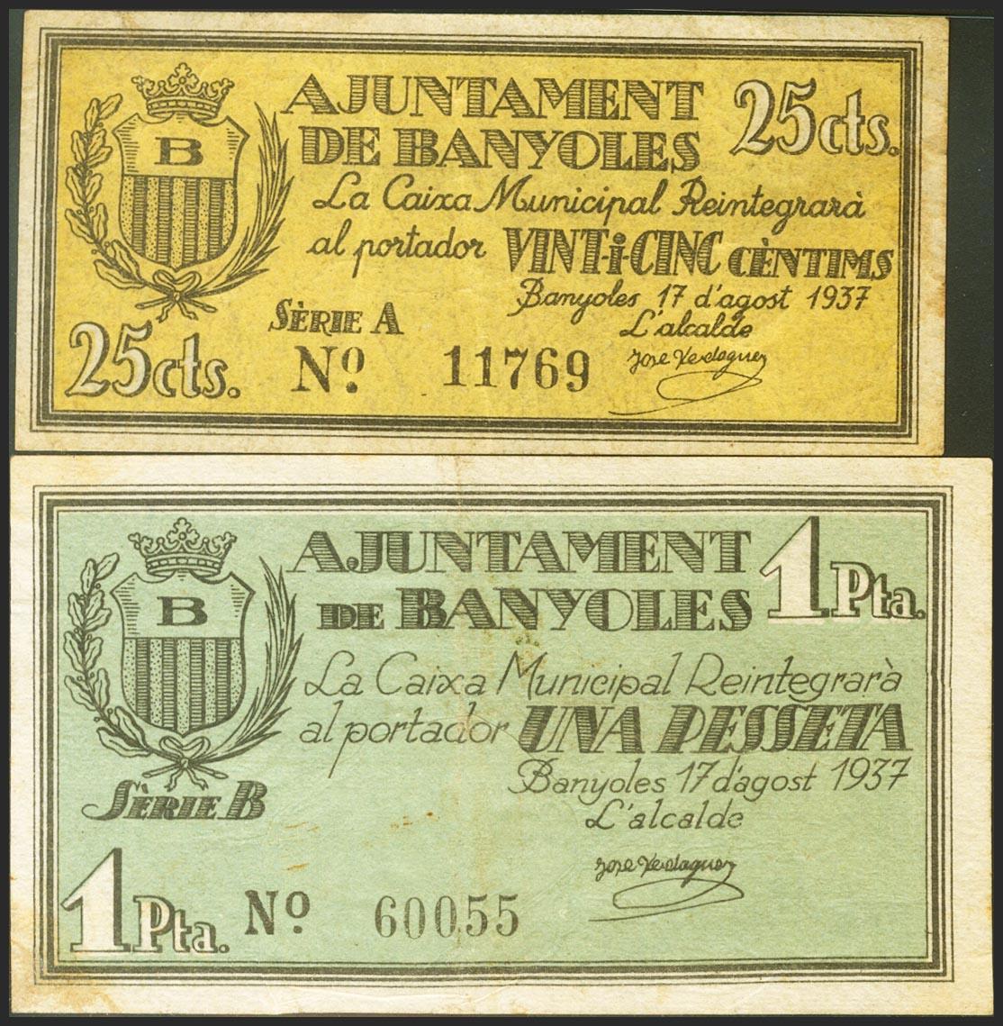 BANYOLES (GERONA). 25 Cents and 1 Peseta. August 17, 1937. Series A and B, respectively. (González: 6506/07). Complete series. Good Very Fine.