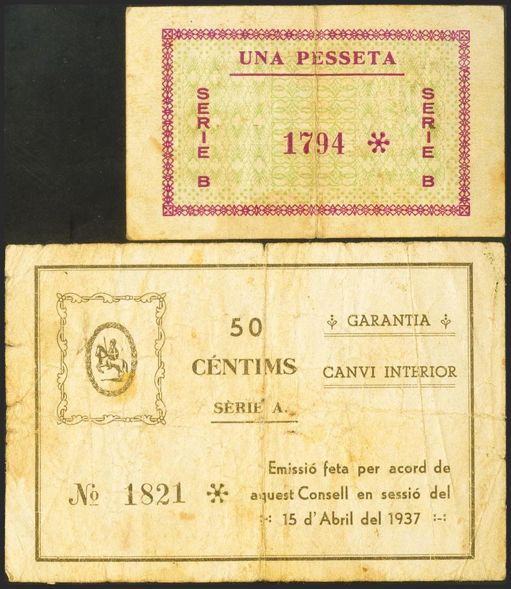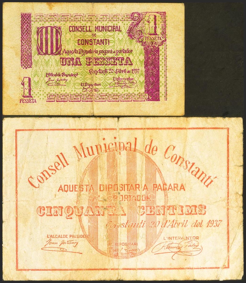 CONSTANT (TARRAGONA). 50 Cents and 1 Peseta. April 20, 1937. Series A and B, respectively. (González: 7649/50). Complete series. Fine.