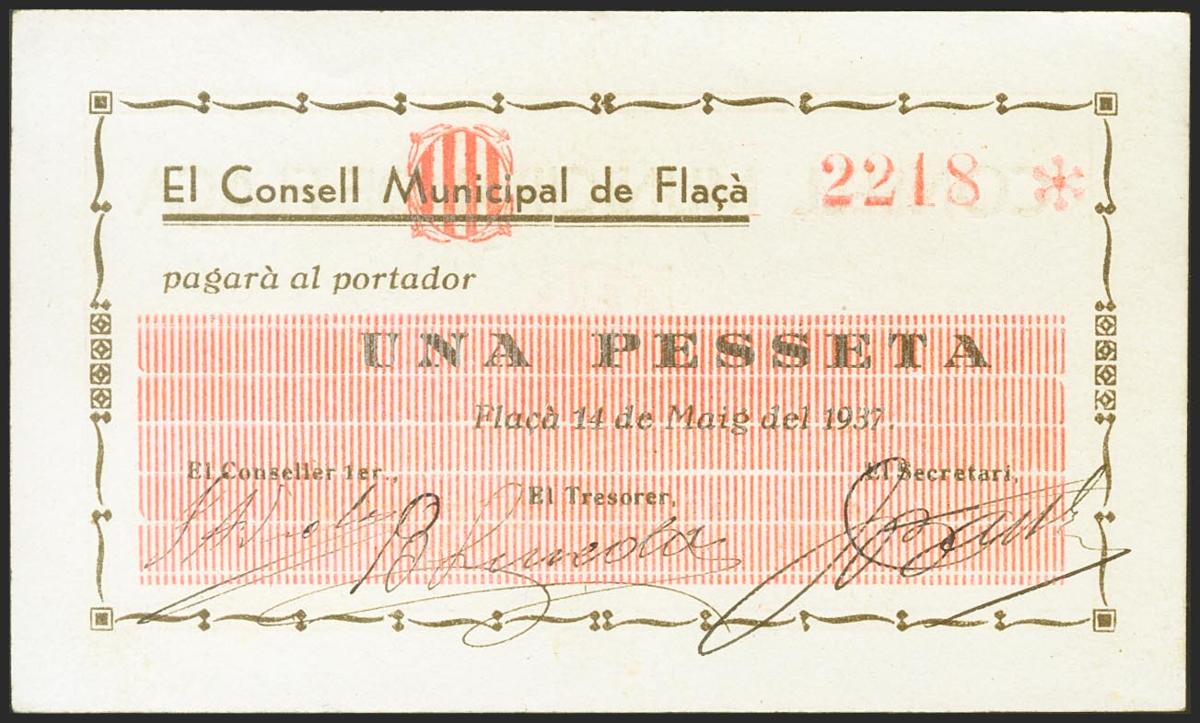 FLAÇA (GERONA). 1 Peseta. May 14, 1937. (González: 7880). Rare. Extremely Fine.