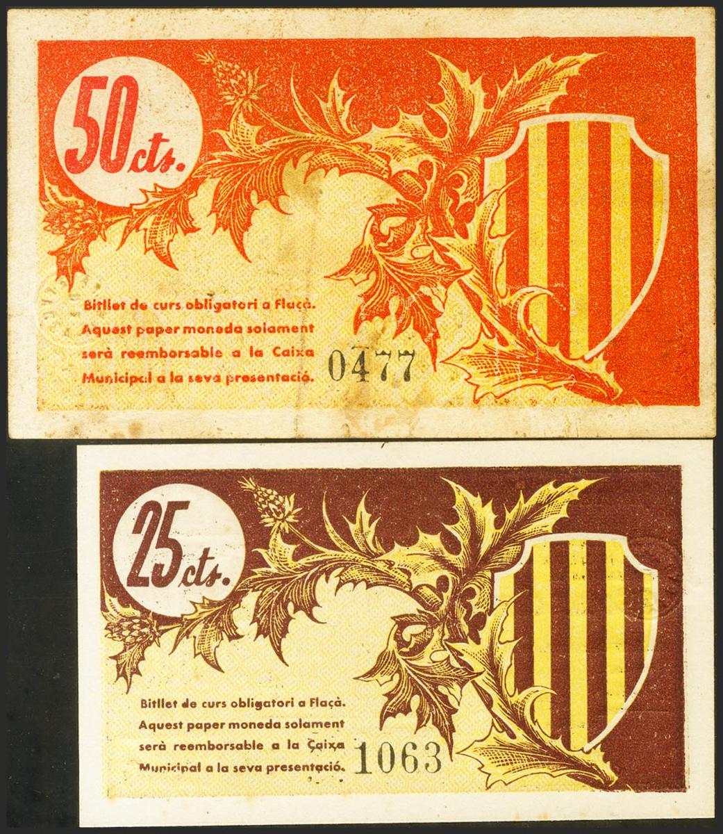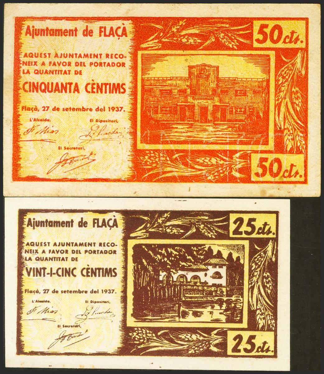 FLAÇA (GERONA). 25 cents and 50 cents. September 27, 1937. (González: 7881/82). Complete series. Extremely Fine/ Very Fine.