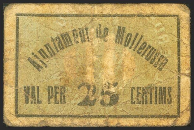 MOLLERUSA (LERIDA). 25 cents. (1936ca). (Gonzalez: 8708). Fine.