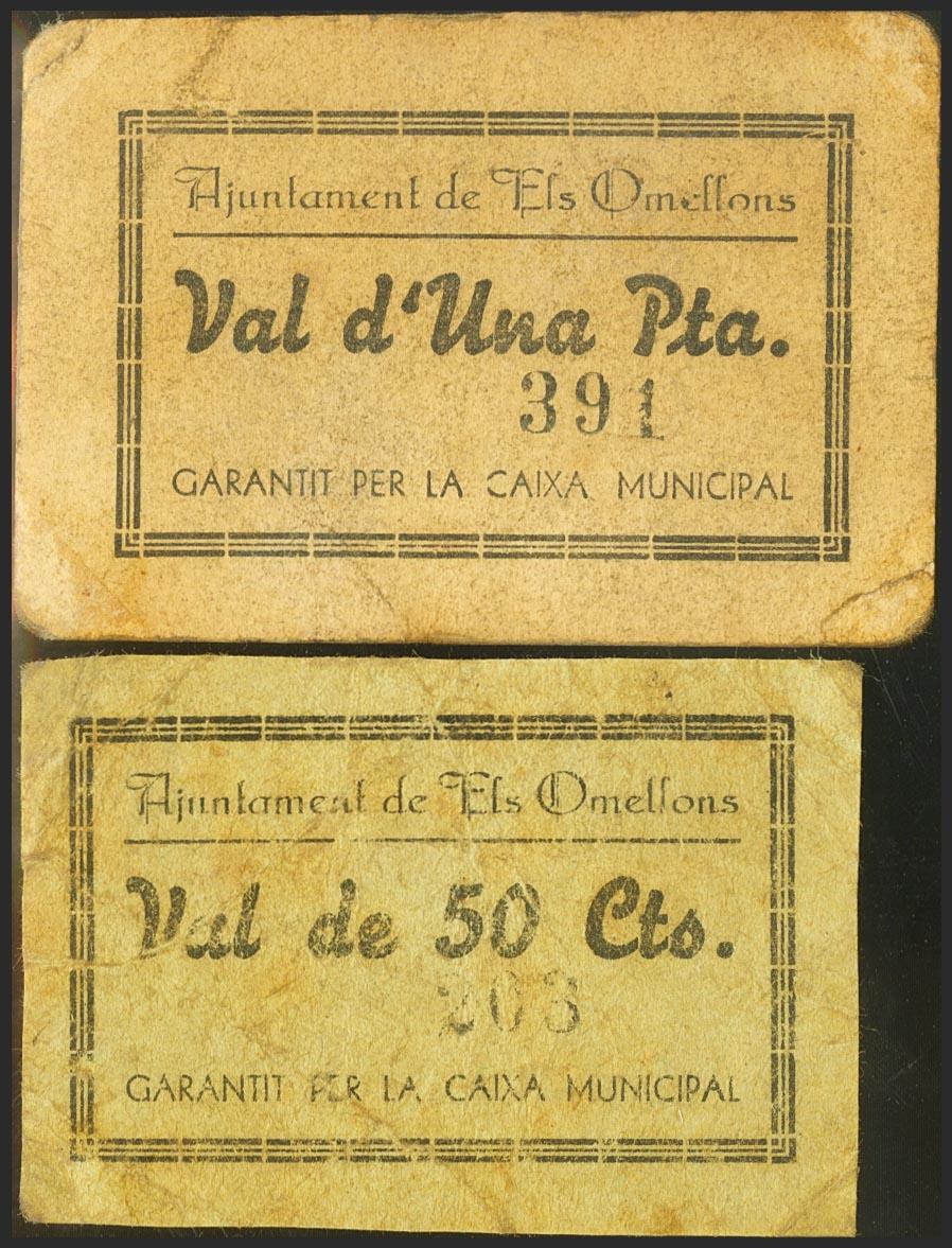 ELS OMELLONS (LERIDA). 50 Cents and 1 Peseta. (1936ca). (Gonzalez: 9034, 9035). Very rare. Very Fine/ Good Very Fine.