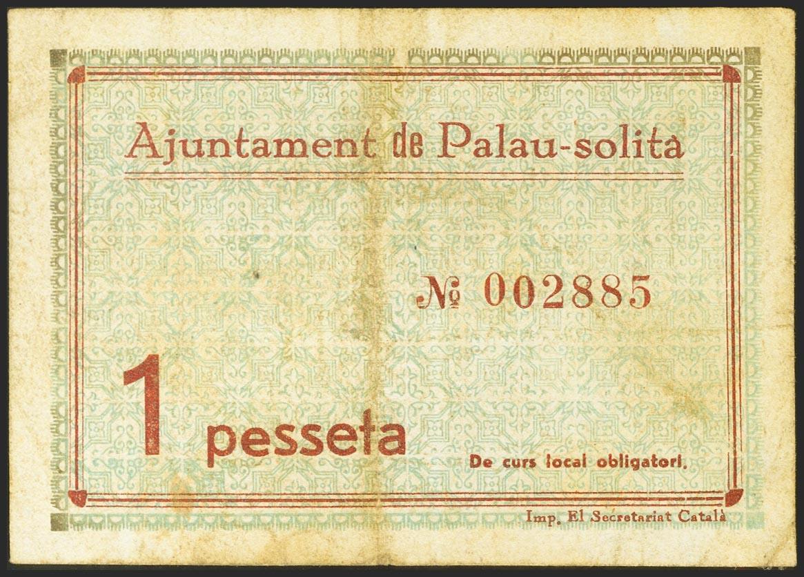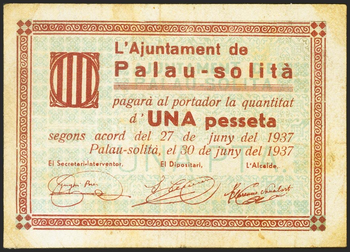 English PALAU-SOLITA (BARCELONA). 1 Peseta. June 30, 1937. (González: 9130). unusual. Good Very Fine.