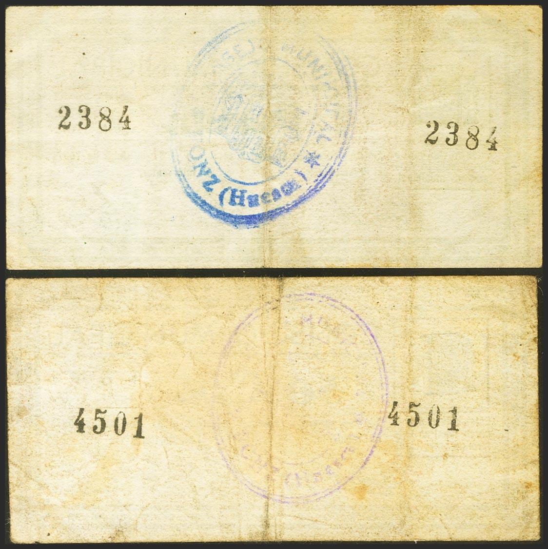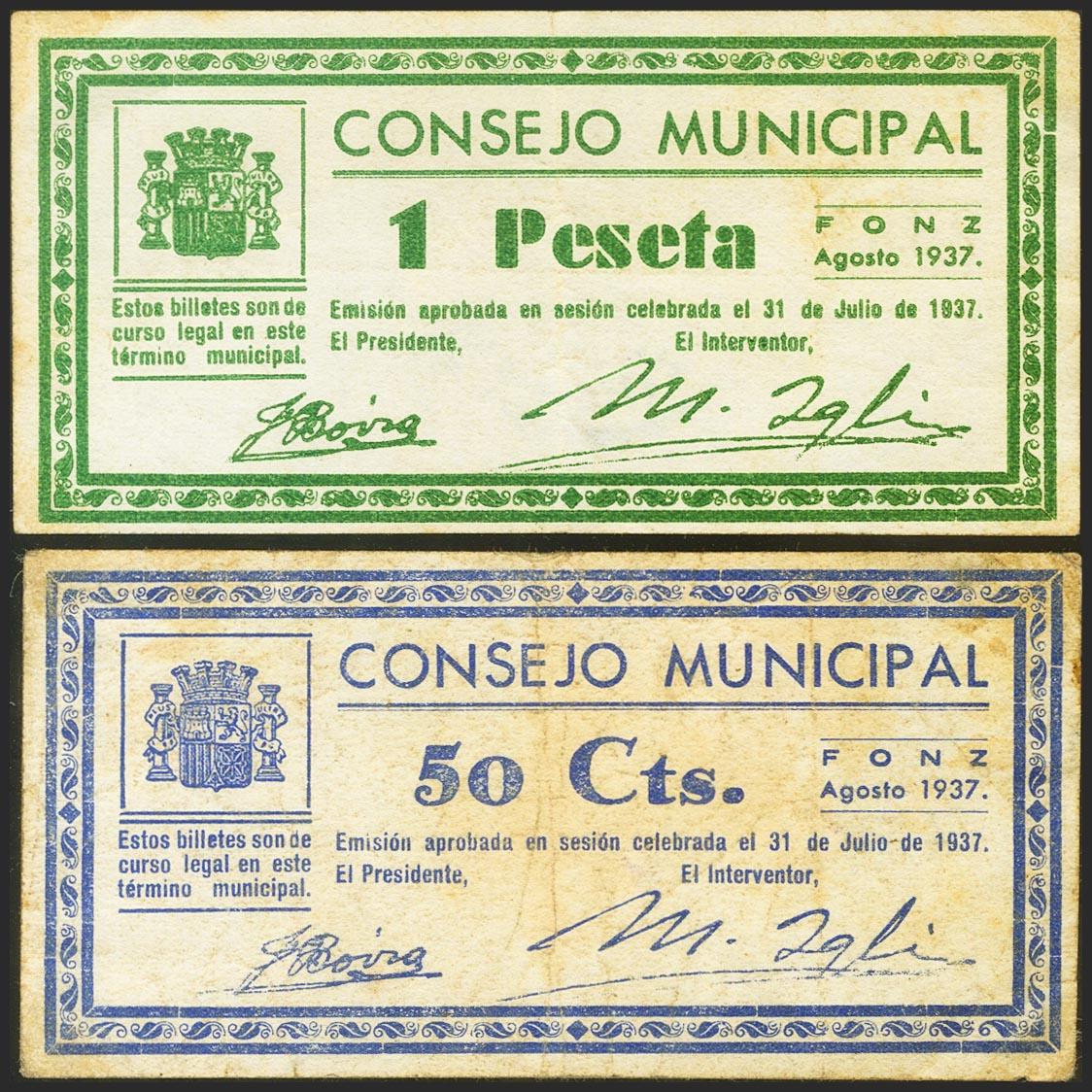 English FONZ (HUESCA). 50 Cents and 1 Peseta. August 1937. (González: 2477, 2478). unusual. Very Fine.