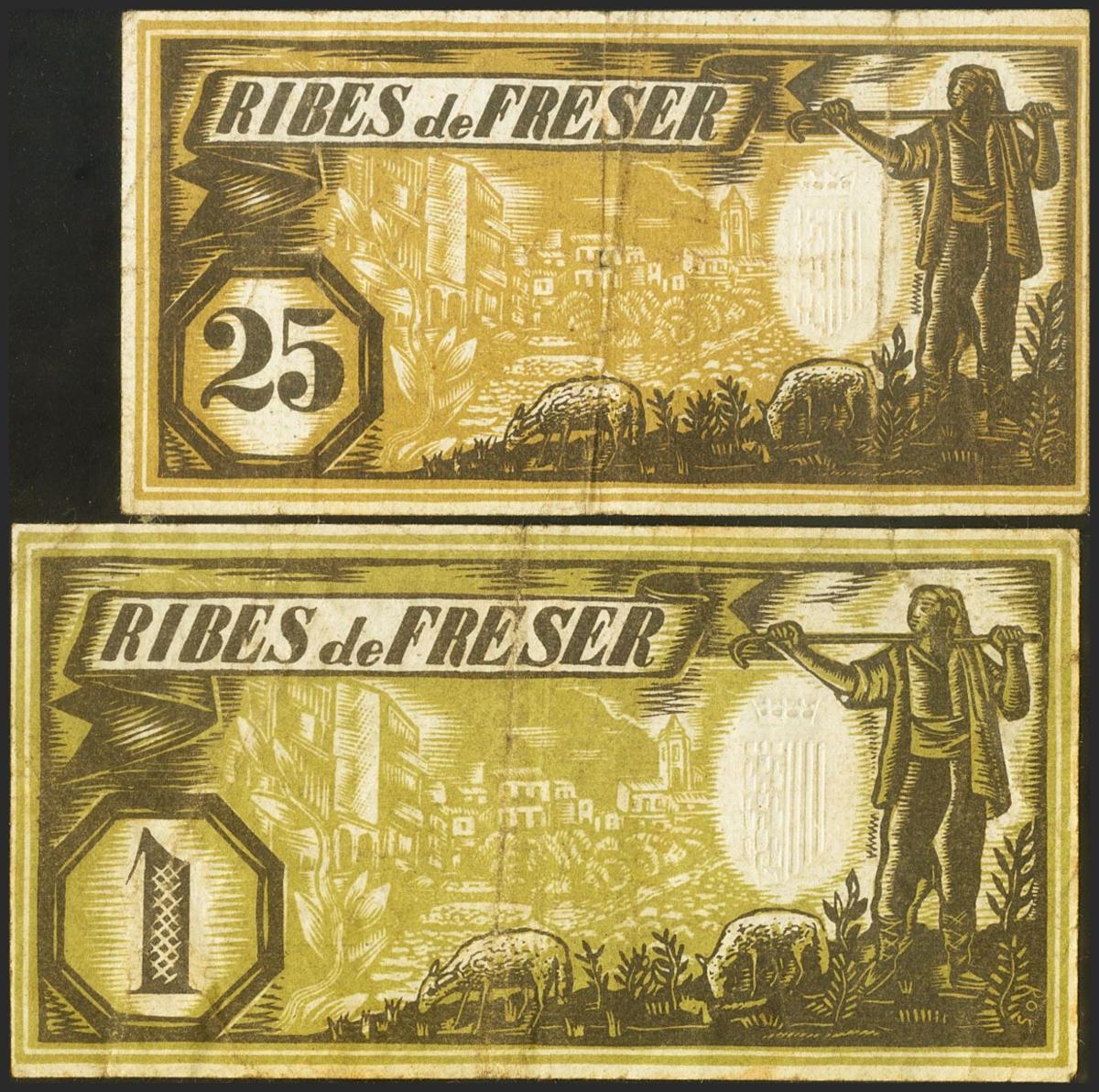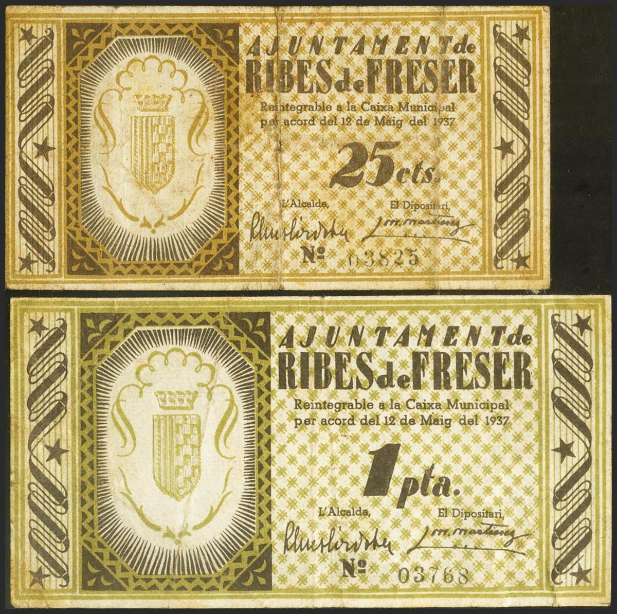 English RIBES OF FRESER (GERONA). 25 Cents and 1 Peseta. May 12, 1937. (González: 9620, 9622). rare. Very Fine/ Good Very Fine.