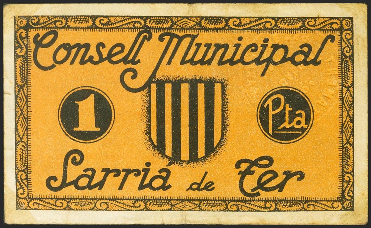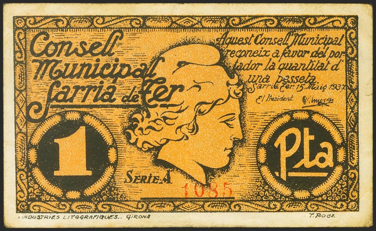 English SARRIA DE TER (GERONA). 1 Peseta. May 15, 1937. Series A. (González: 9884). unusual. Extremely Fine.