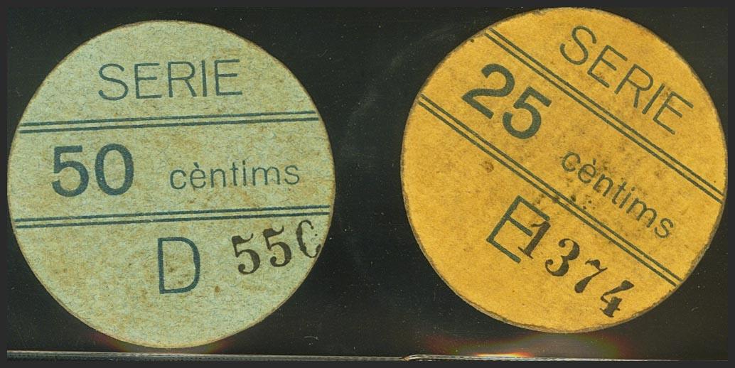 English VIELLA (LERIDA). 25 cents and 50 cents. (1936ca). Series E and D, respectively. (Gonzalez: 10659/60). Very rare complete series. Extremely Fine.