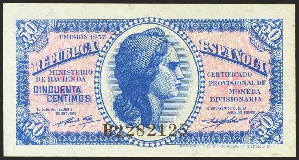 50 cents. 1937. Series B. (Edifil 2021: 391). Original sizing. Uncirculated.