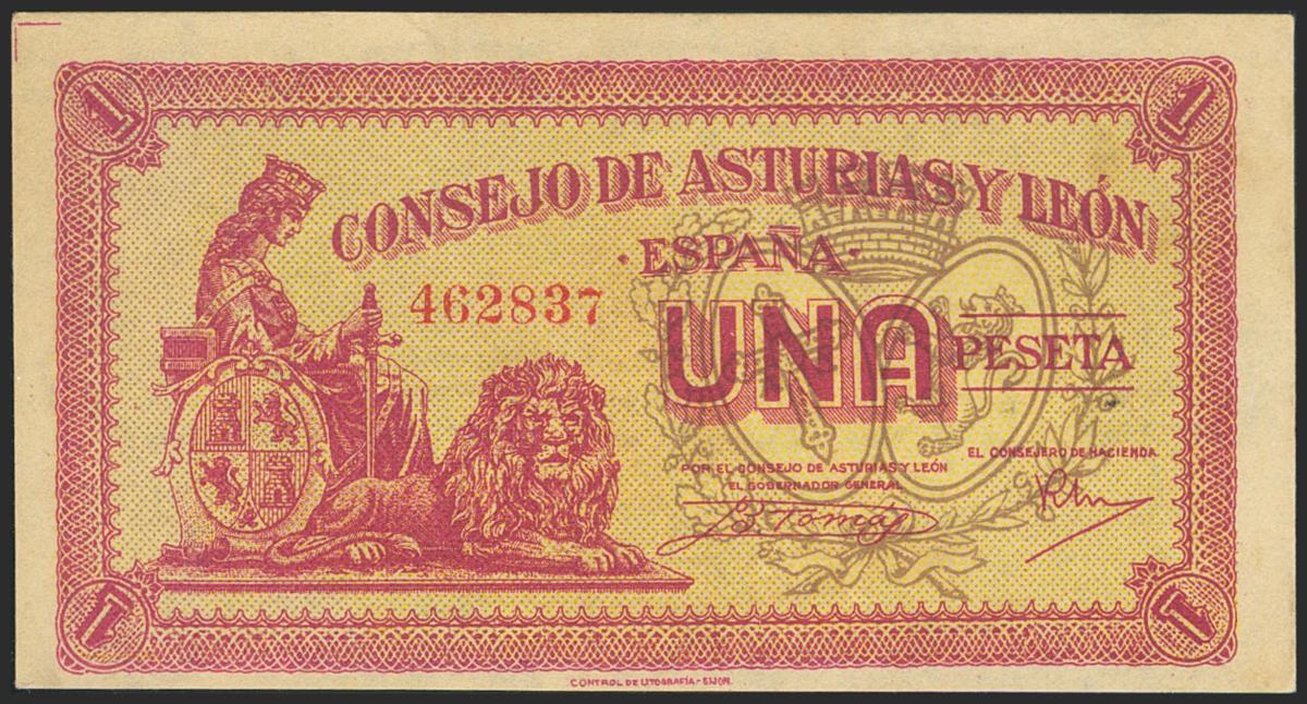 1 Peseta. 1937. Asturias and Leon. No serie. (Edifil 2021: 397). Original sizing. Almost Uncirculated.
