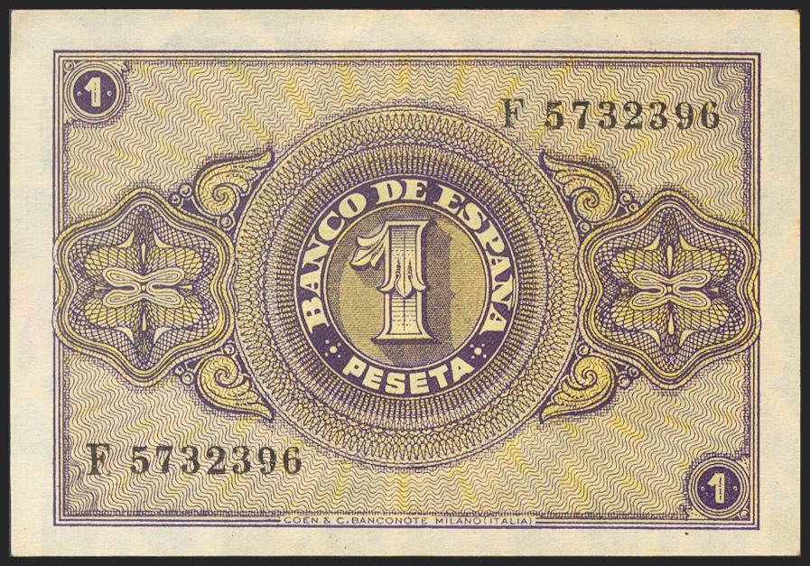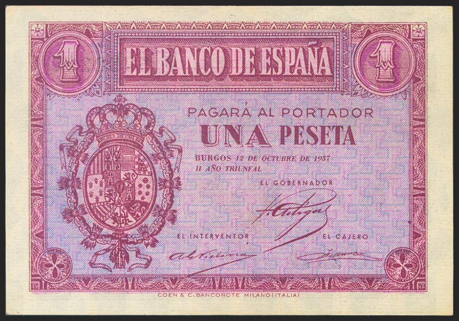 1 Peseta. October 12, 1937. Series F, last series issued. (Edifil 2021: 425a). It retains all its original sizing. Almost Uncirculated.