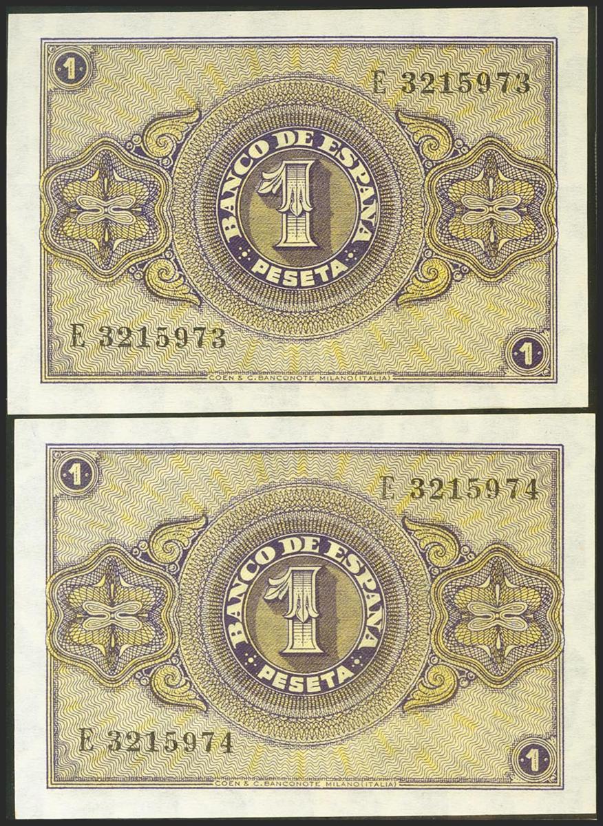 English 1 Peseta. February 28, 1938. Correlative couple. Series E. (Edifil 2021: 427a). Original sizing. Original sizing. Uncirculated.