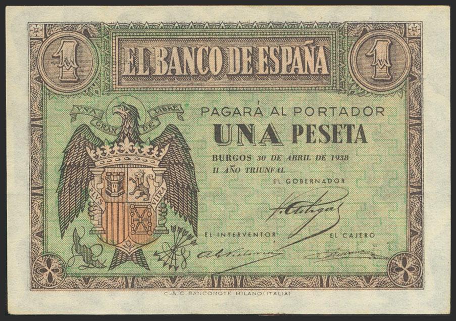 1 Peseta. April 30, 1938. Series H. (Edifil 2021: 428a). Original sizing. Uncirculated.