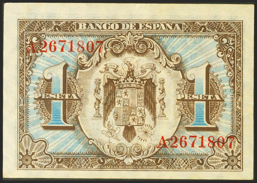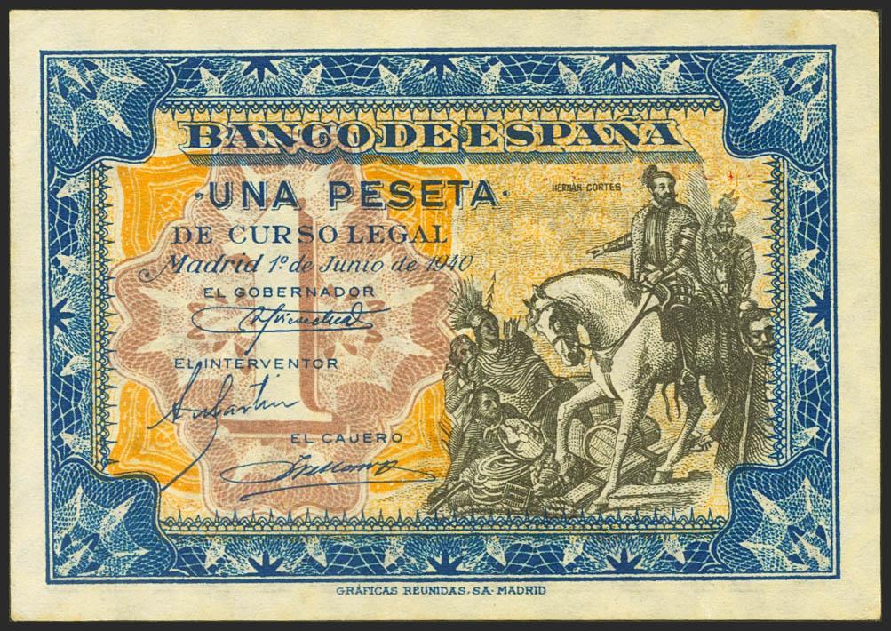1 Peseta. June 1, 1940. Series A. (Edifil 2021: 441a). Retains much of the original sizing. Extremely Fine.