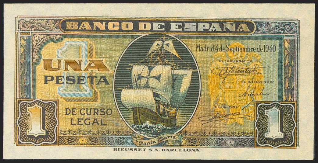 English 1 Peseta. September 4, 1940. Series F. (Edifil 2021: 442a). It retains all its original sizing. Uncirculated.