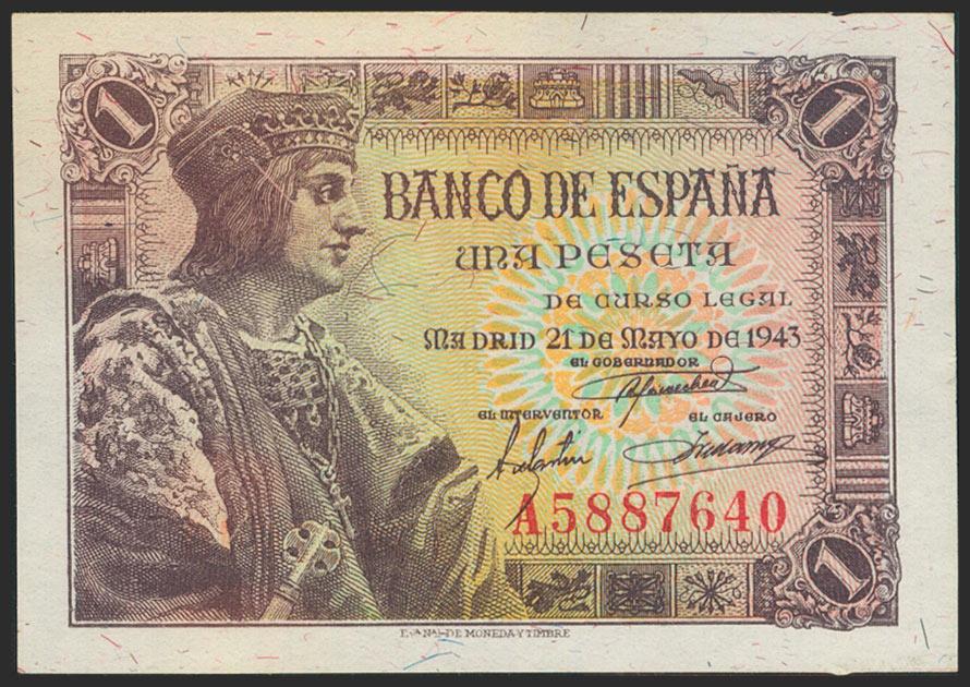 English 1 Peseta. May 21, 1943. Series A. (Edifil 2021: 447a). Original sizing. Uncirculated.