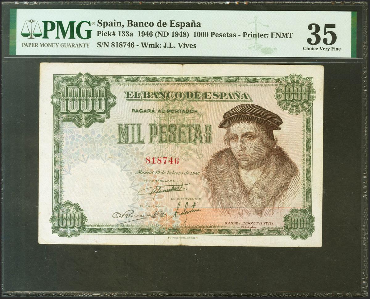 1000 Pesetas. February 19, 1943. No series. (Edifil 2021: 453, Pick: 133a). Good Very Fine. PMG35 encapsulation.