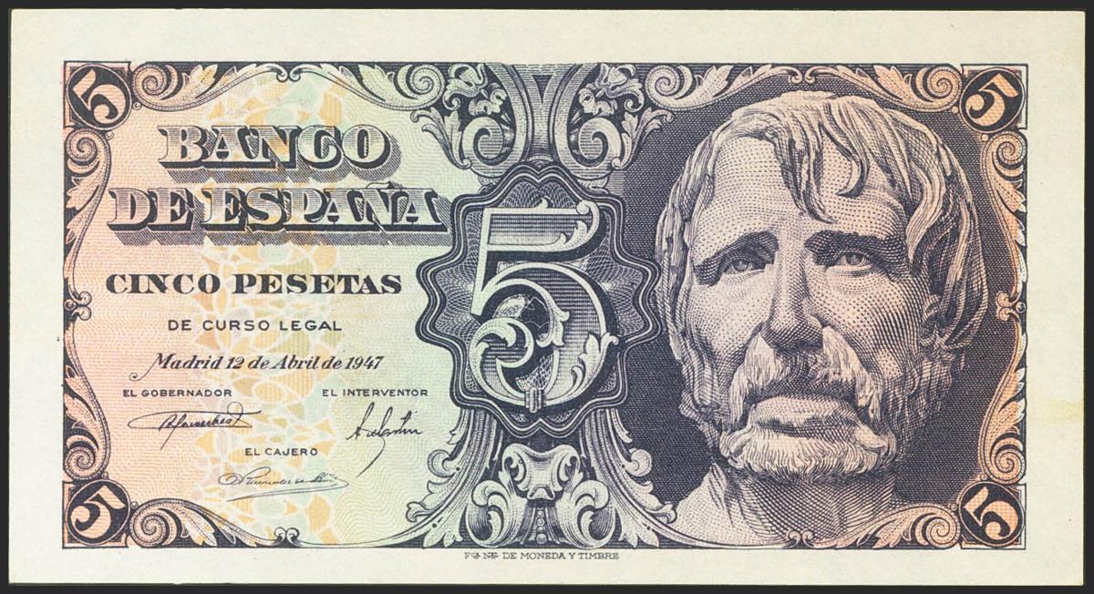 5 pesetas. April 12, 1947. No series. (Edifil 2021: 454). Unusual in this quality, it retains all its original sizing. Uncirculated.