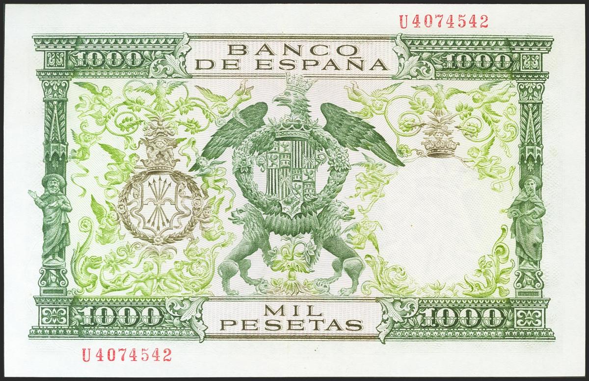 1000 Pesetas. November 29, 1957. Series U. (Edifil 2021: 469b). Original sizing. Almost Uncirculated.