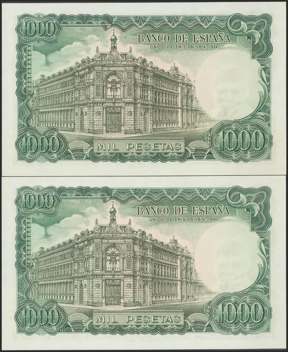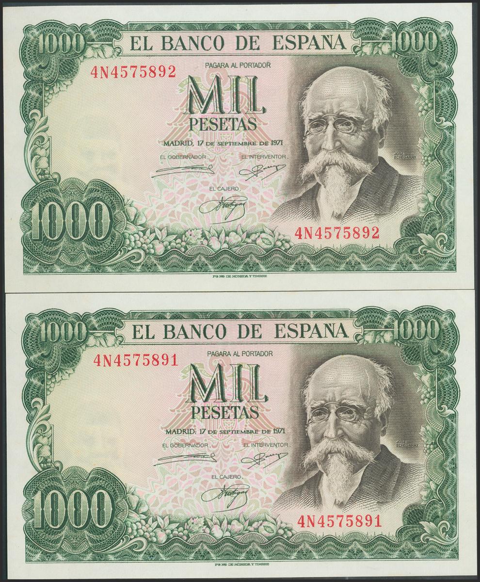 1000 Pesetas. September 17, 1971. Correlative couple. 4N series. (Edifil 2017: 474c). Original sizing. Almost Uncirculated.