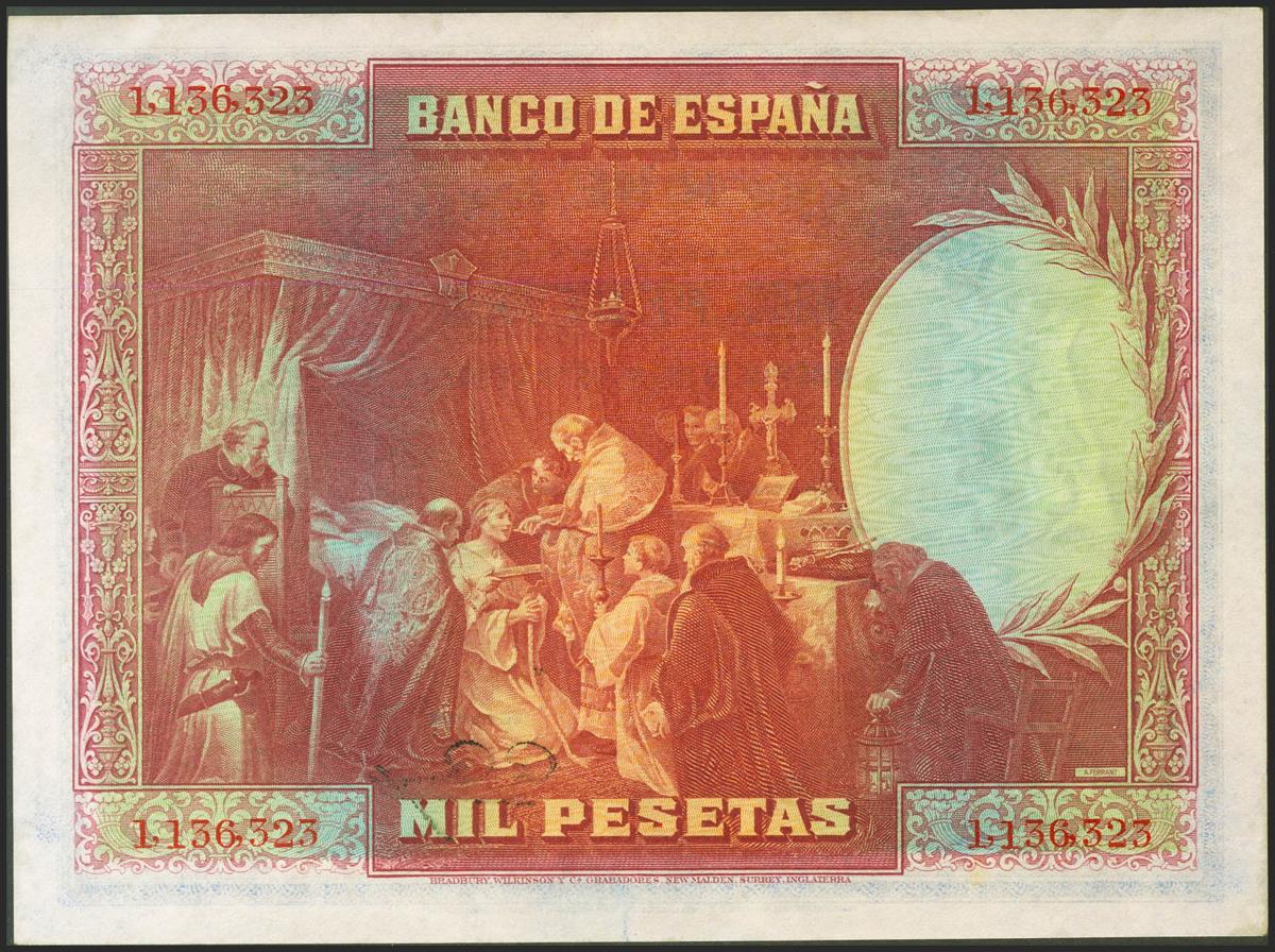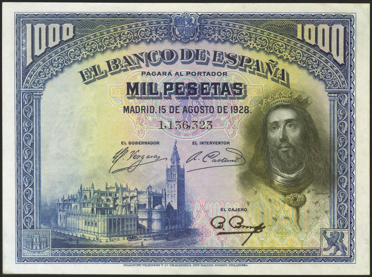 English 1000 Pesetas. August 15, 1928. No series. (Edifil 2021: 357). Retains all the original sizing. Uncirculated.