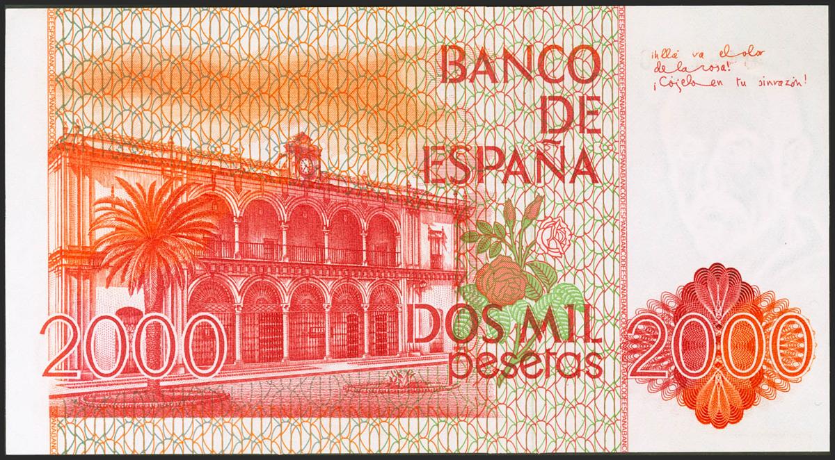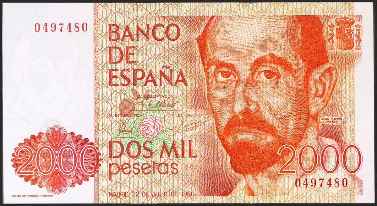 English 2000 Pesetas. July 22, 1980. No series. (Edifil 2021: 479). Uncirculated.