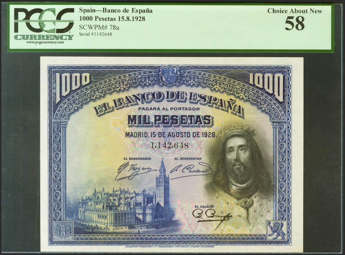 1000 Pesetas. August 15, 1928. No series. (Edifil 2021: 357). EBC++. PCGS58 package.