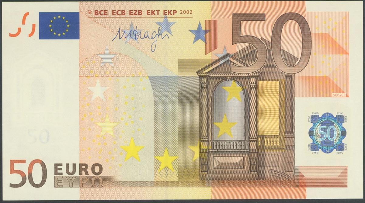 English 50 euros. January 1, 2002. Signature Draghi. Series V (Spain). (Edifil 2017: 489B). Uncirculated.
