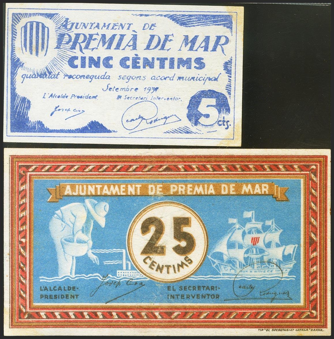 SEA AWARD (BARCELONA). 5 Cents and 25 Cents (series D). September 1937. (González: 9467, 9468). Good Extremely Fine.