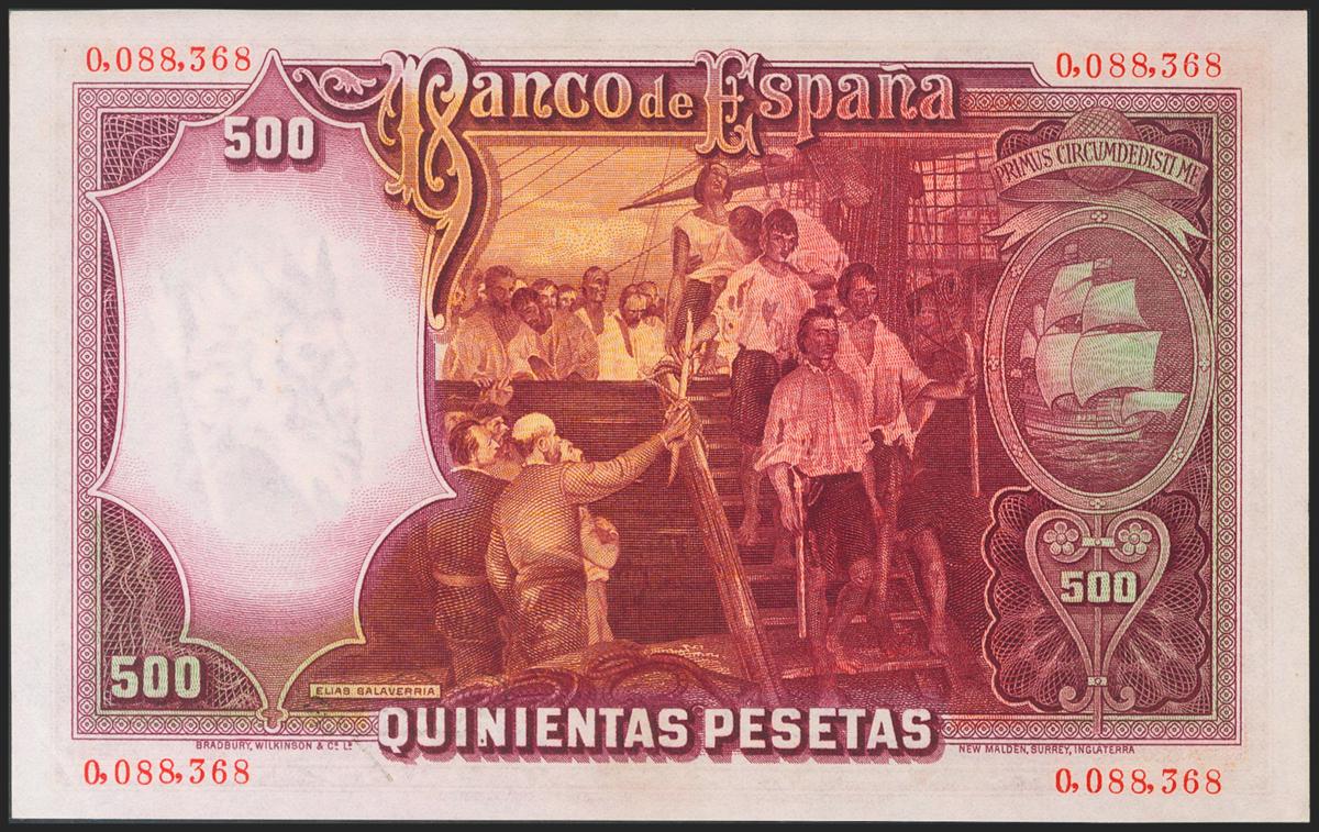 500 pesetas. April 25, 1931. No series. (Edifil 2021: 361). Original sizing. Almost Uncirculated.