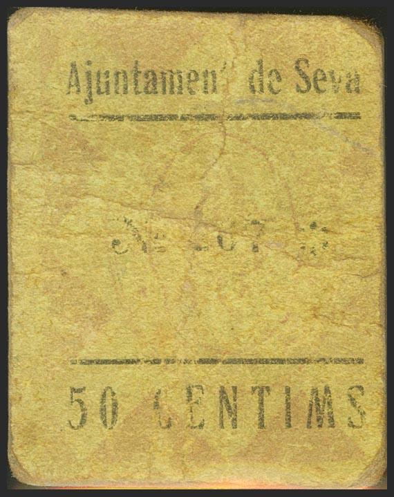 English SEVA (BARCELONA). 50 cents. (1936ca). (Gonzalez: 10009). Very rare. Very Fine.