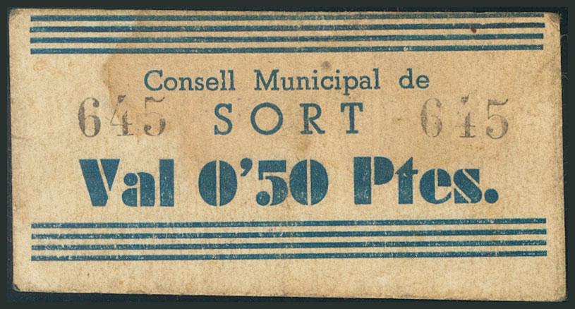 English SORT (LERIDA). 50 cents. (1938ca). (Gonzalez: 10045). Rare. Very Fine.