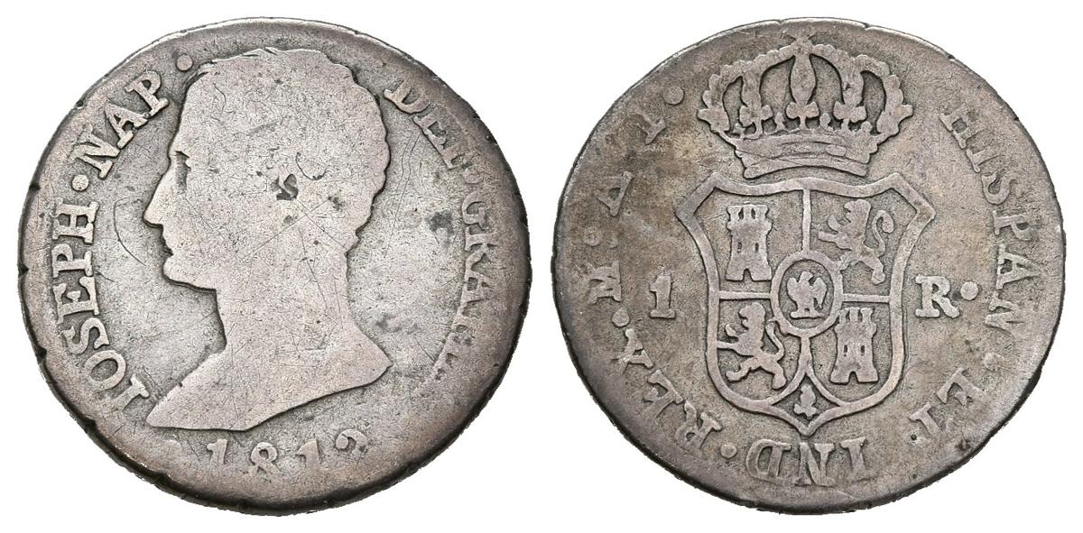 JOSEPH NAPOLEON (1808-1813). 1 Real (Ar. 1.42g/26mm). 1812. Madrid AI. (Cal-2019-7). Almost Fine/ Fine. Very scarce.