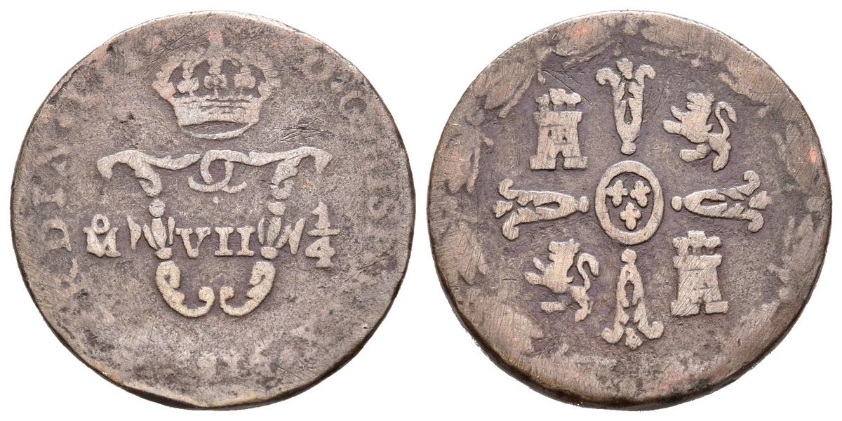 FERDINAND VII (1808-1833). 1/4 of Tlaco (Ae. 3.45g/20mm). 1815. Mexico. (Cal-2019-108). Fine. Limited.