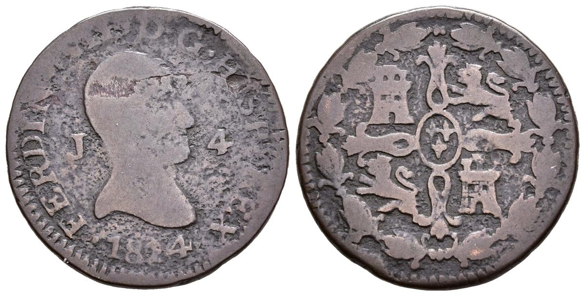 FERDINAND VII (1808-1833). 4 Maravedis (Ae. 4.97g/26mm). 1814. Jubia. Naked bust. (Cal-2019-160). Fine.