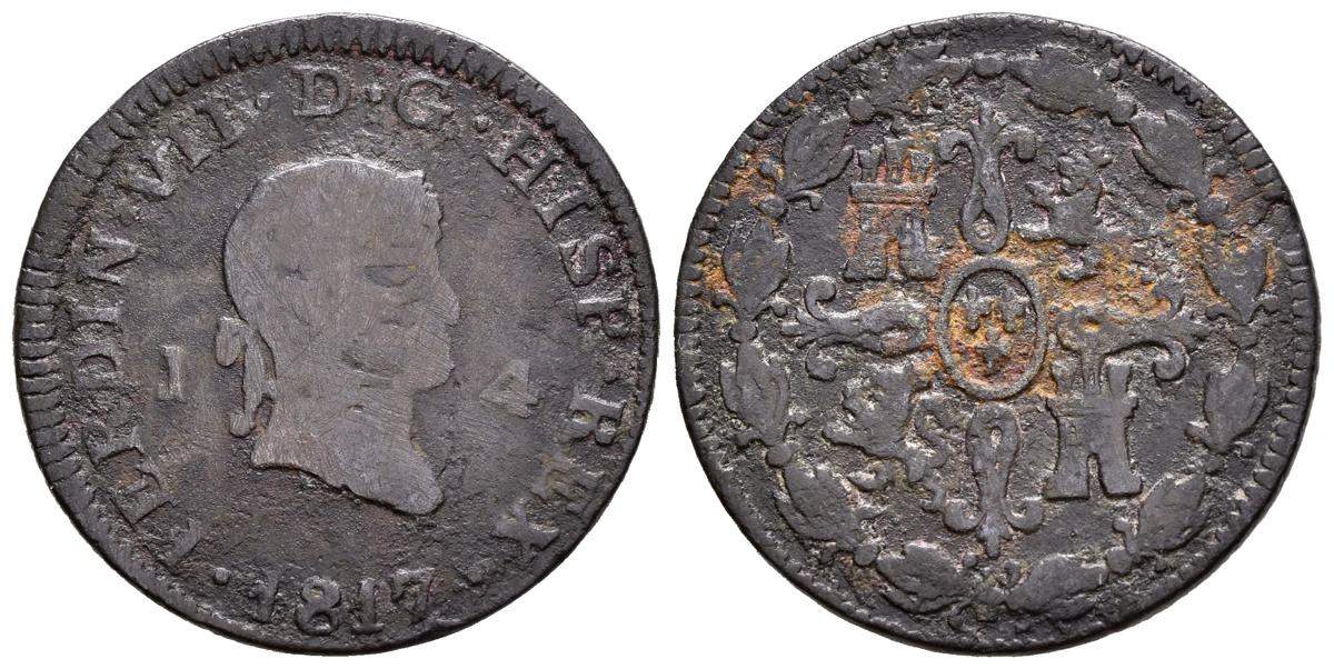 English FERDINAND VII (1808-1833). 4 Maravedis (Ae. 4.40g/25mm). 1817. Jubia. Laureate bust. (Cal-2019-163). Almost Very Fine. Limited.