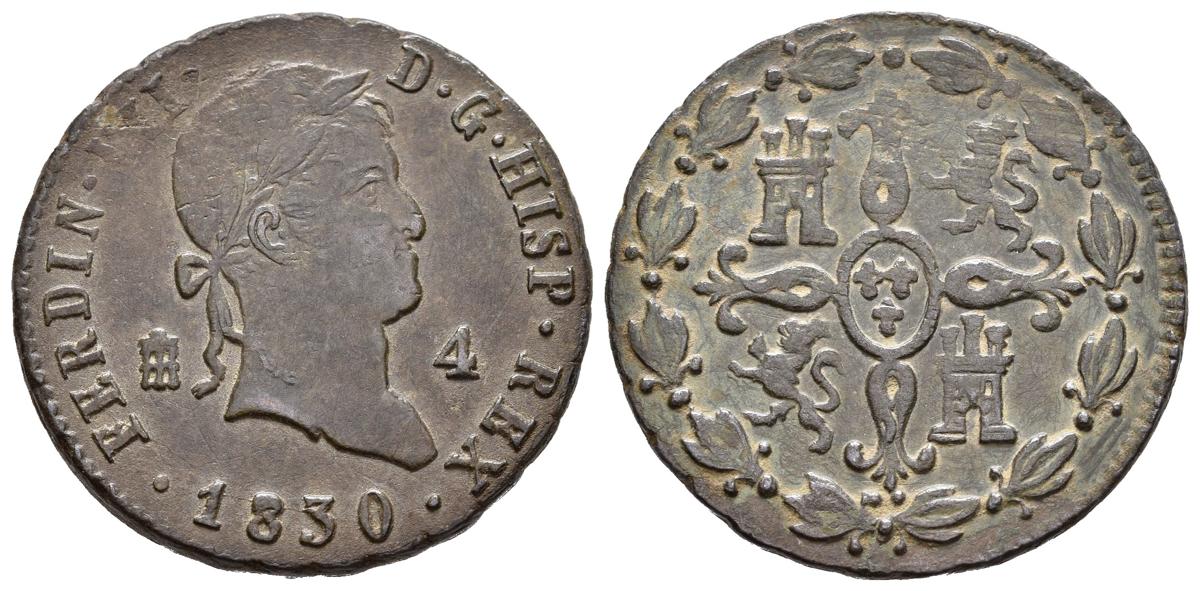 FERDINAND VII (1808-1833). 4 Maravedís (Ae. 5.88g/24mm). 1830. Segovia. (Cal-2019-184). Good Very Fine.