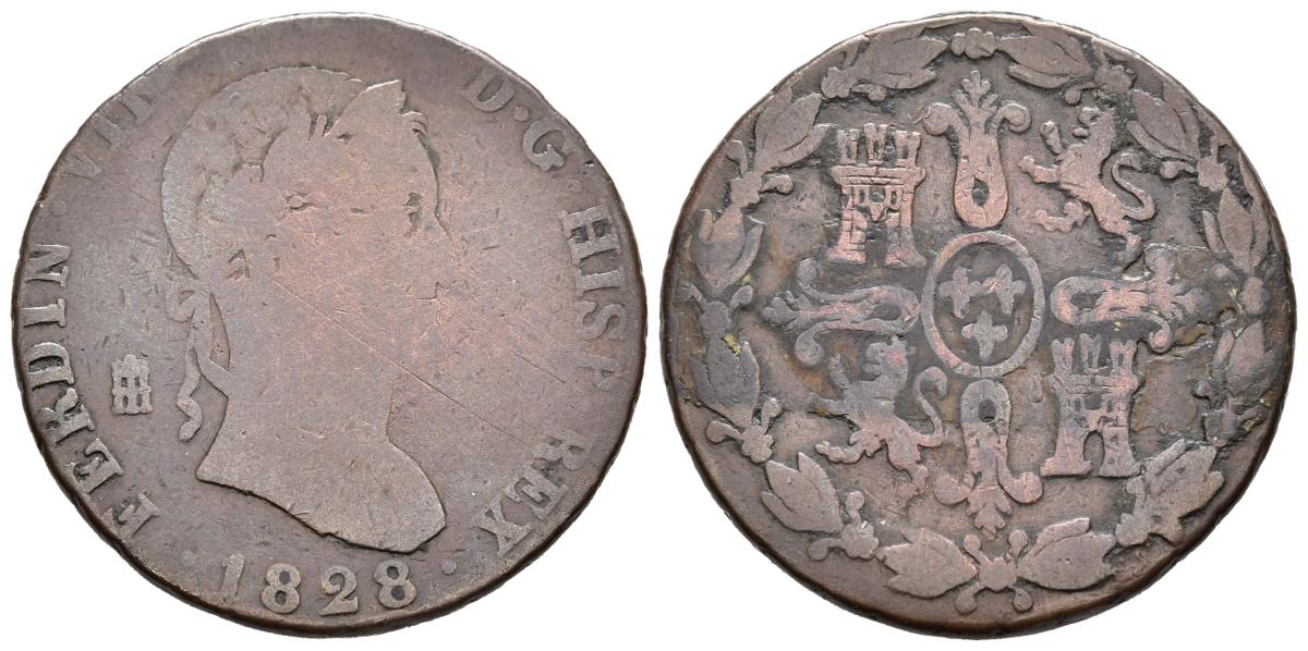 FERDINAND VII (1808-1833). 8 Maravedis (Ae. 8.96g/29mm). 1828. Segovia. (Cal-2019-231). Good. Rare date.