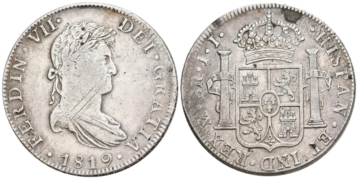 English FERDINAND VII (1808-1833). 8 Reales (Ar. 26.72g/40mm). 1819. Mexico JJ. (Cal-2019-1334). Very Fine.