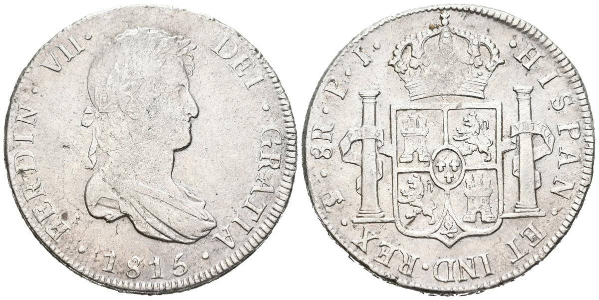 FERDINAND VII (1808-1833). 8 Reales. (Ar. 27.02g/40mm). 1815. Potosí PJ. (Cal-2019-1379). Very Fine/ Very Fine