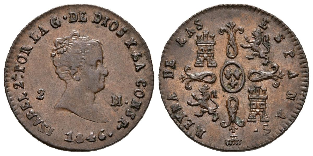 ELIZABETH II (1833-1868). 2 Marvels. (Ae. 2.17g/29mm). 1846. Segovia. (Cal-2019-46). Extremely Fine. Nice specimen.