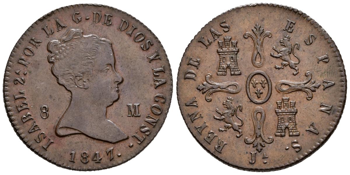 ELIZABETH II (1833-1868). 8 Maravedis (Ae. 9.91g/30mm). 1847. Jubia. (Cal-2019-114). Good Extremely Fine.