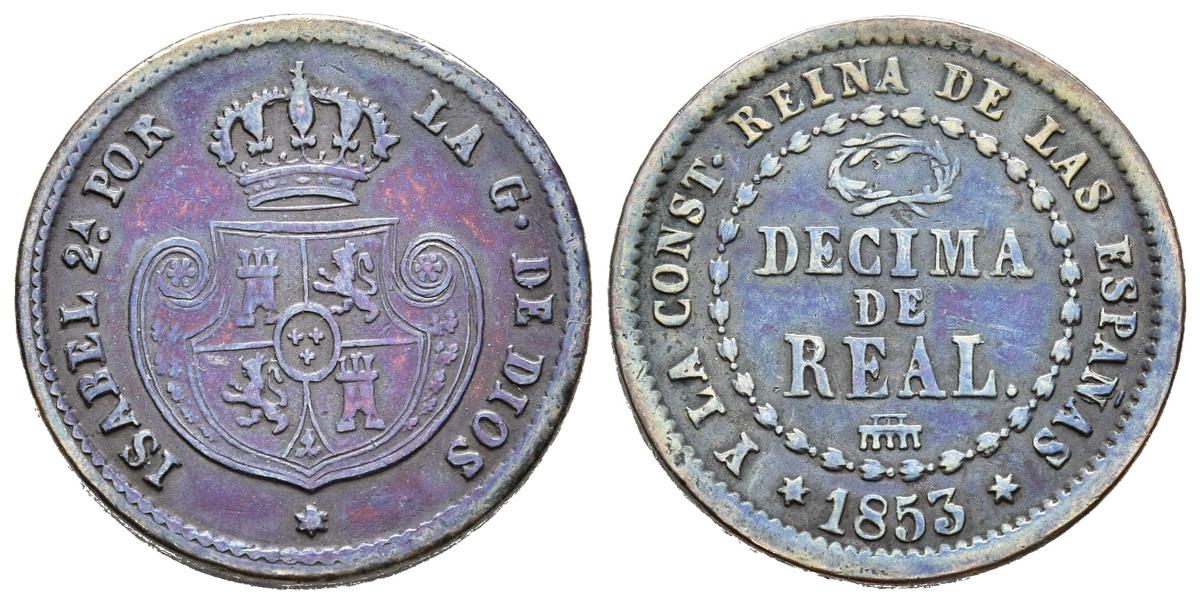 English ELIZABETH II (1833-1868). Tenth of a Real (Ae. 3.70g/19mm). 1853. Segovia. (Cal-2019-146). Good Very Fine. Beautiful patina.