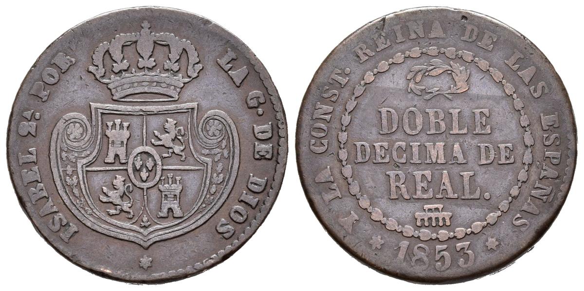 English ELIZABETH II (1833-1868). Double Tenth of a Real (Ae. 7.50g/22mm). 1853. Segovia. (Cal-2019-148). Almost Very Fine.